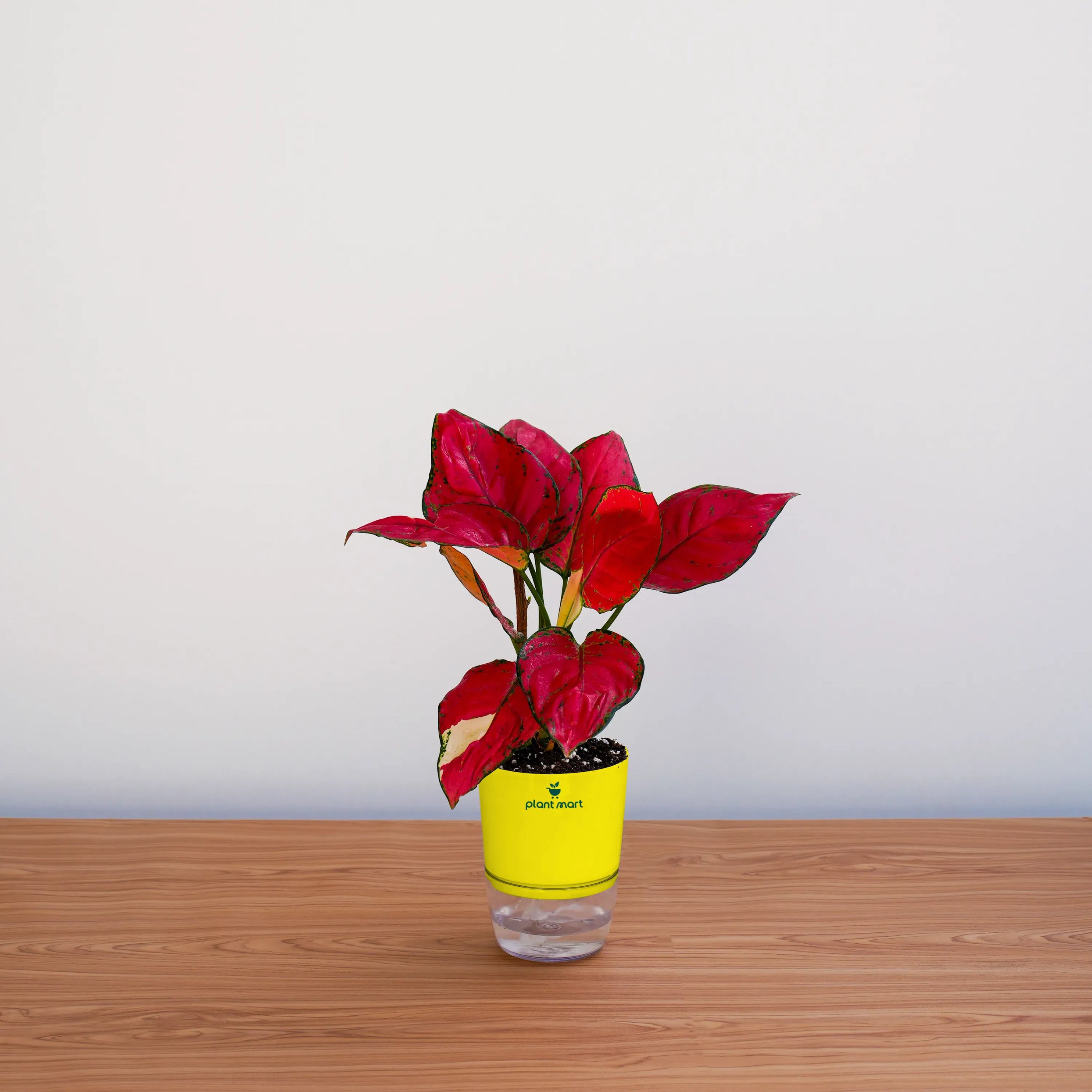 🌿 Product Features Botanical Name: Aglaonema ‘Lady Valentine’ Common Name: Chinese Evergreen Lady Valentine Pot Type: Self-Watering Pot (Medium) Plant Height: Approx. 10–14 inches Foliage Colors: Rich pink leaves with green borders Light Requirement: Indirect or moderate indoor light Maintenance: Very low; perfect for beginners Air Purifying: Excellent for removing indoor pollutants Ideal Placement: Bedroom, living room, side table, office desk