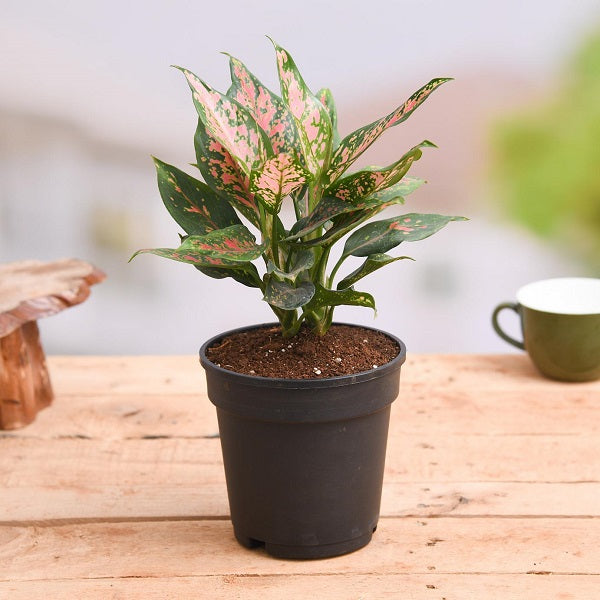 🌿 Product Features Botanical Name: Aglaonema Pink Dalmatian Common Name: Chinese Evergreen (Pink Dalmatian) Pot Type: Premium Self-Watering Pot (Medium) Plant Height: Approx. 10–14 inches Foliage Color: Green leaves with pink speckles and midrib Light Requirement: Medium to low indirect light Maintenance: Easy to care for, drought-tolerant Air Purifying: Filters airborne toxins for cleaner indoor air Ideal Placement: Living rooms, bedrooms, office desks, or reception areas